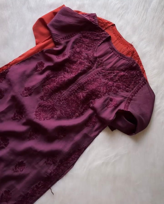 Handcrafted Rayon Muqaish Dyed Chikankari Kurti