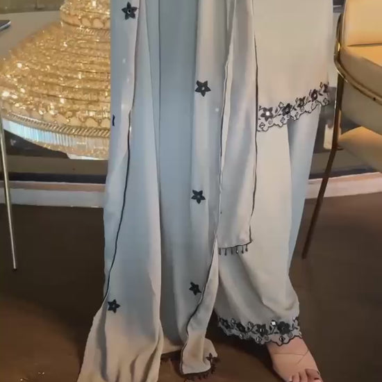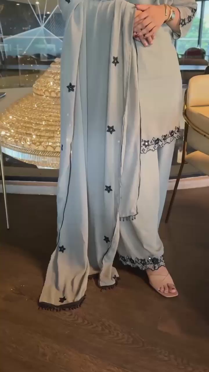 Ash Grey Floral Embroidery Co-ord Set