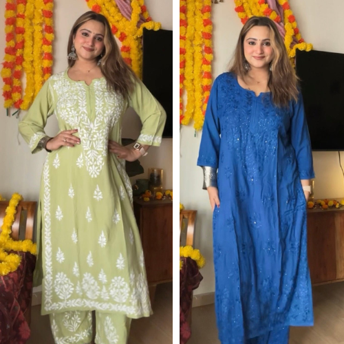 Saba Soft Rayon 2pc Chikankari Co-ord Plazo Set