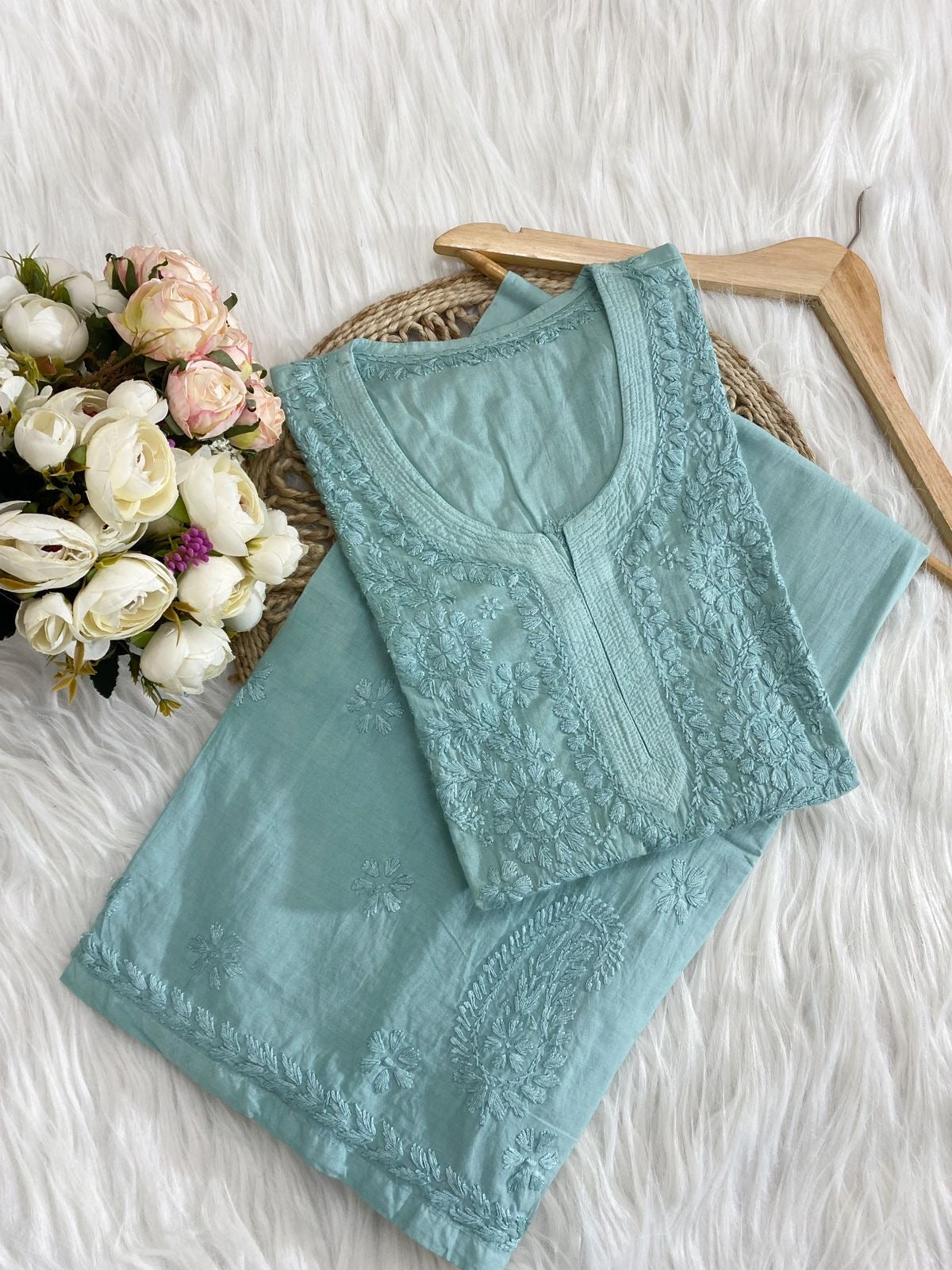 ✔ Embroidery: Traditional Lucknowi Chikankari work